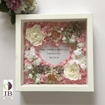 背景のお色は会社さまのイメージカラー2色に近いお花のお色で、バラとあじさいでお埋めしました。