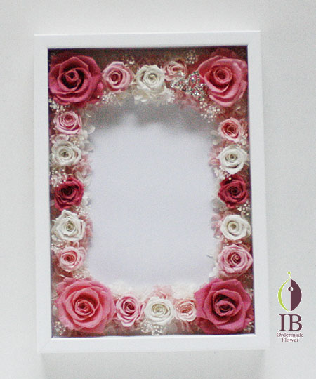 華やかなピンクのバラをプラスしたフレームを