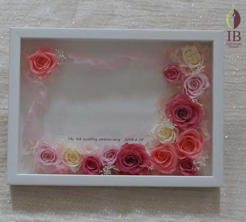 フレーム装飾ですので場所をとらず、プリザーブドフラワーを長期間お楽しみいただけます。