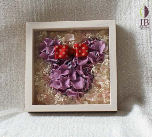 フレーム装飾ですので場所をとらず、埃も入りにくく、プリザーブドフラワーをより長期間お楽しみいただけます。