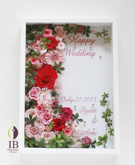 プリザーブドフラワ- 60輪のバラ フレーム装飾