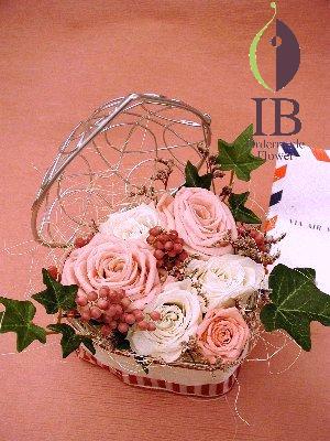 プリザーブフラワーバラ(シャンパン)、ペッパーベリー、アイビー(イミテーション)