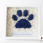 ご希望通りのお花でワンちゃんのシルエットは深い色合いのレッドを使用して白いガーベラ、バラでワンちゃんのシルエットを囲んでいます。可愛らしいフレームになっています。