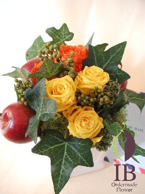 021168 可愛らしいギフト2002年11月30日■シャンパン色のブリザードフラワーのプチギフト■ 花 オーダーメイド ■全体の外寸 直径8×高さ11センチ ■実際にご注文いただいたご依頼主さまのご都合上、 画像のお花の価格は公表いたしかねます。 ■使用花材 ブリザードフラワー バラ(ベルデッシモ シャンパン)、アート製りんご、ラヌギノサ、 アジサイグリーン、ベビーレプト、素焼きの鉢 おまかせ,出産お祝い,誕生日