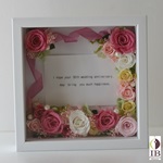 おばさまの還暦のお祝いに正方形のフレームに真紅のバラをメインにピンクのバラをミックスして