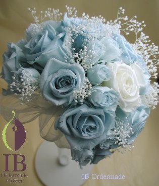 バラ(パウダーブルー、アンティークホワイト)、カーネーションライトブルー、