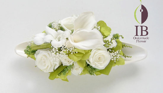 高級感のある花器に、お花がとびだしていて、生花のような感じで