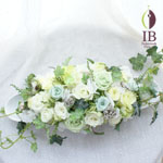 ばら(フルーティーオレンジ、ゴールデンイエロー、ジュリアオレンジ、モーニングイエロー、ピーチ)かすみ草、あじさい、リボン、パール