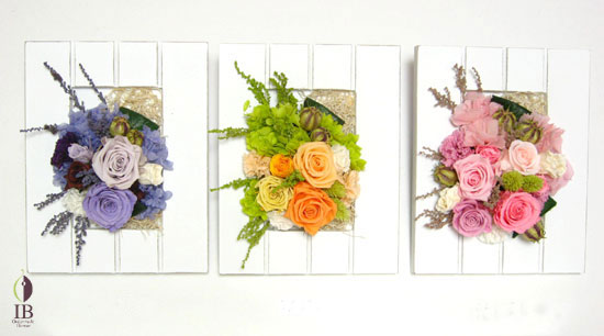 プリザーブドフラワーウッドフレームアレンジメントです。