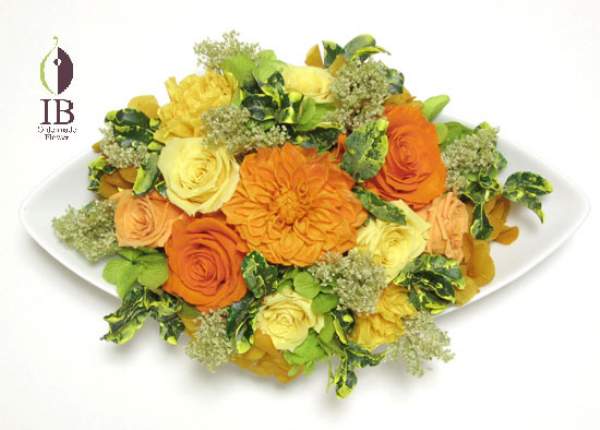 いろいろなプリザードフラワー黄色のコラボレーション