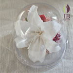 カサブランカと白のカラードーム入り装飾をお作りいたしました。