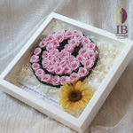 お母さまの古稀お祝い用として、フレーム内にひし形にパープルのバラを中心に装飾いたしました。