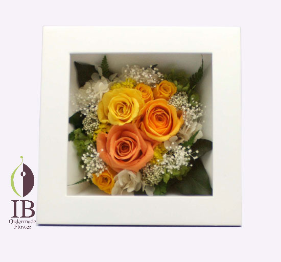 プリザーブドフラワーバラゴールデンイエローをメーンカラーにして