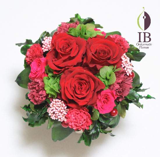 プリザーブドフラワーバラチェリーレッドを中心にサブカラーにクランベリーを使用して