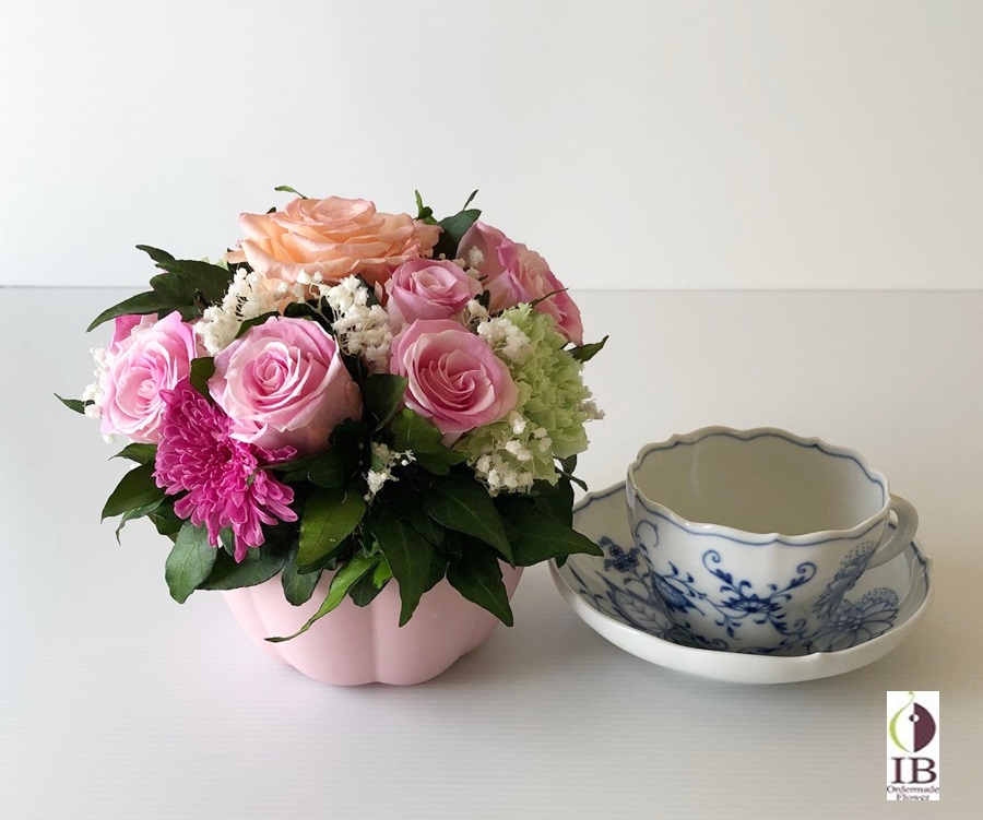 ドフラワーのオーダーメイドを受けてくださるお店を探していたところ御社のHPを拝見して、ご連絡させていただきました。 昨年の母の日に三男が初めてアレンジメントのお花をくれました。とても嬉しく、何とか保存出来ないか色々と調べてみましたがお花に詳しくない事もあり、叶いませんでした。 このアレンジメントをなるべく近い形でブリザードフラワーで再現していただきたく、ご連絡させていただきました。