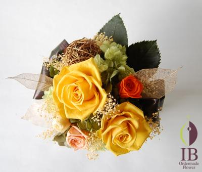 プリザーブドフラワーバラ(モーニングエイロー、ブライダルピンク、ミモザイエロー