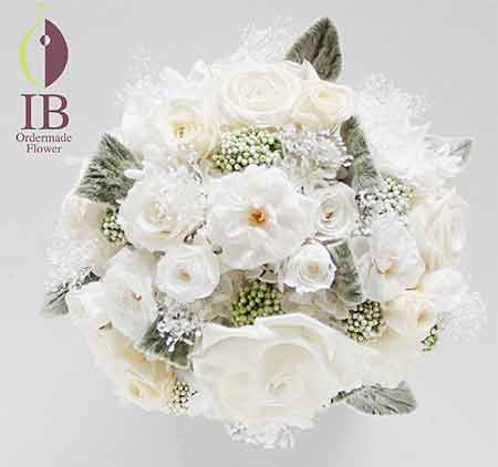 プリザーブドフラワーアジサイグリーン・白、カスミソウ白ラメ