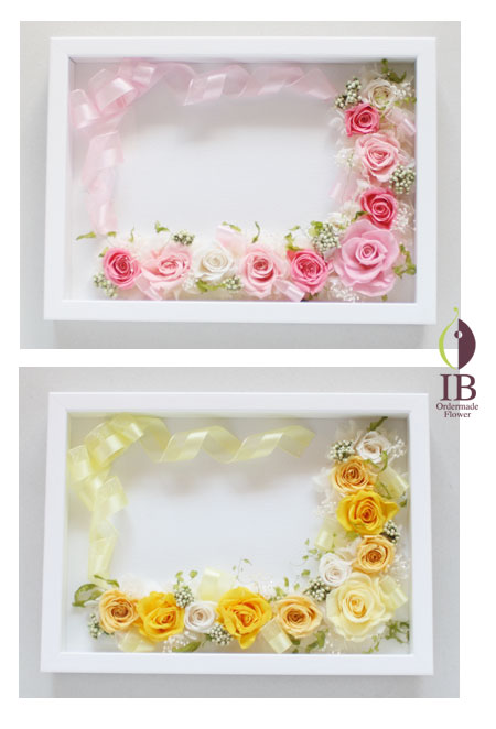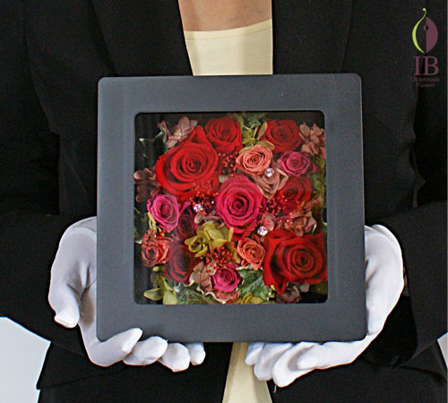 プラスチックのフレームに入った御花ですので、埃や湿気からお花を守り、