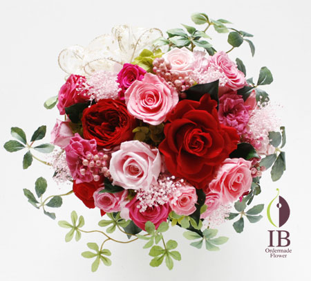 プリザーブドフラワー バラ(クランベリー、チェリーブロッサム、フ-シャーピンク