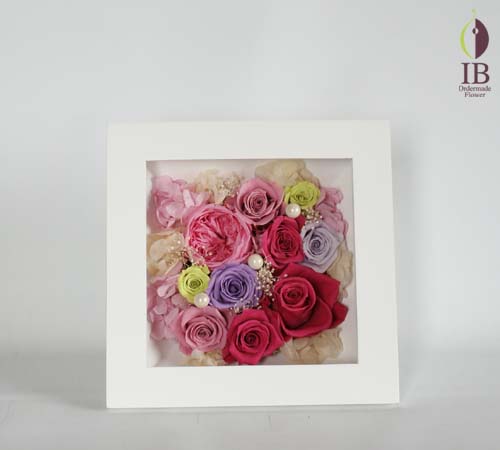 フレーム装飾ですので場所をとらず、埃も入りにくく、プリザーブドフラワーをより長期間お楽しみいただけます。