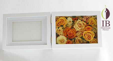 フレームのお花は、ほこりや湿気からお花を守りますため、大変人気のアレンジです。
